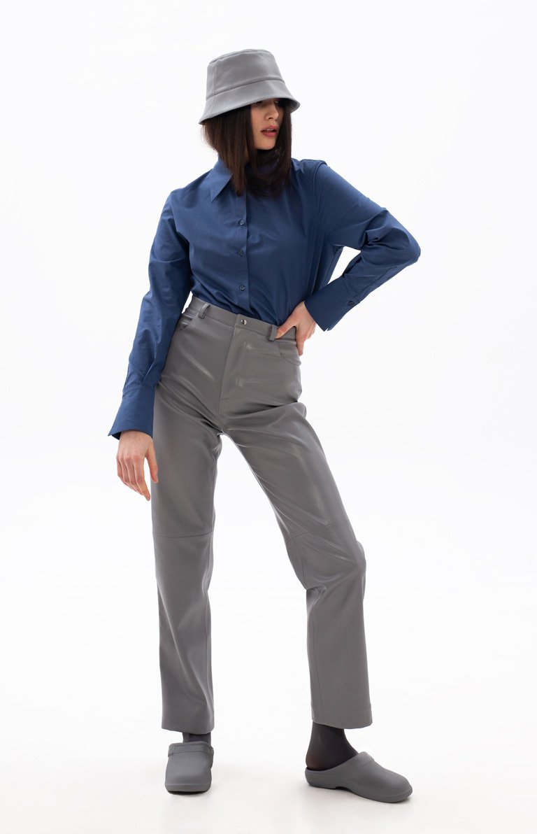 BLUE ECO-LEATHER PANTS