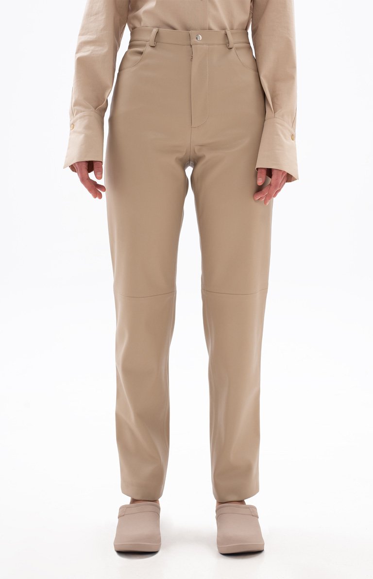 BEIGE ECO-LEATHER PANTS