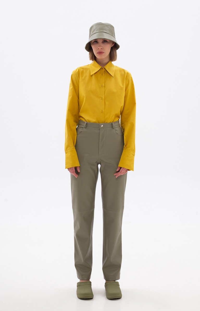 LIGHT GREEN ECO-LEATHER PANTS