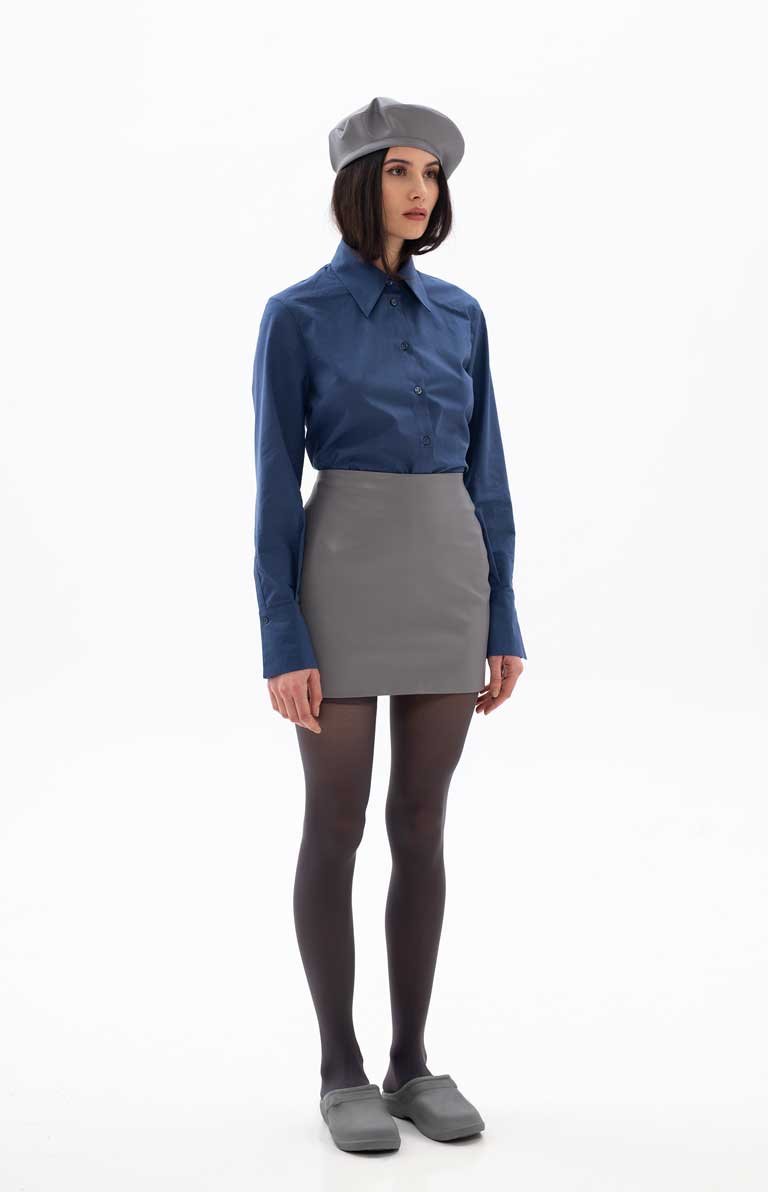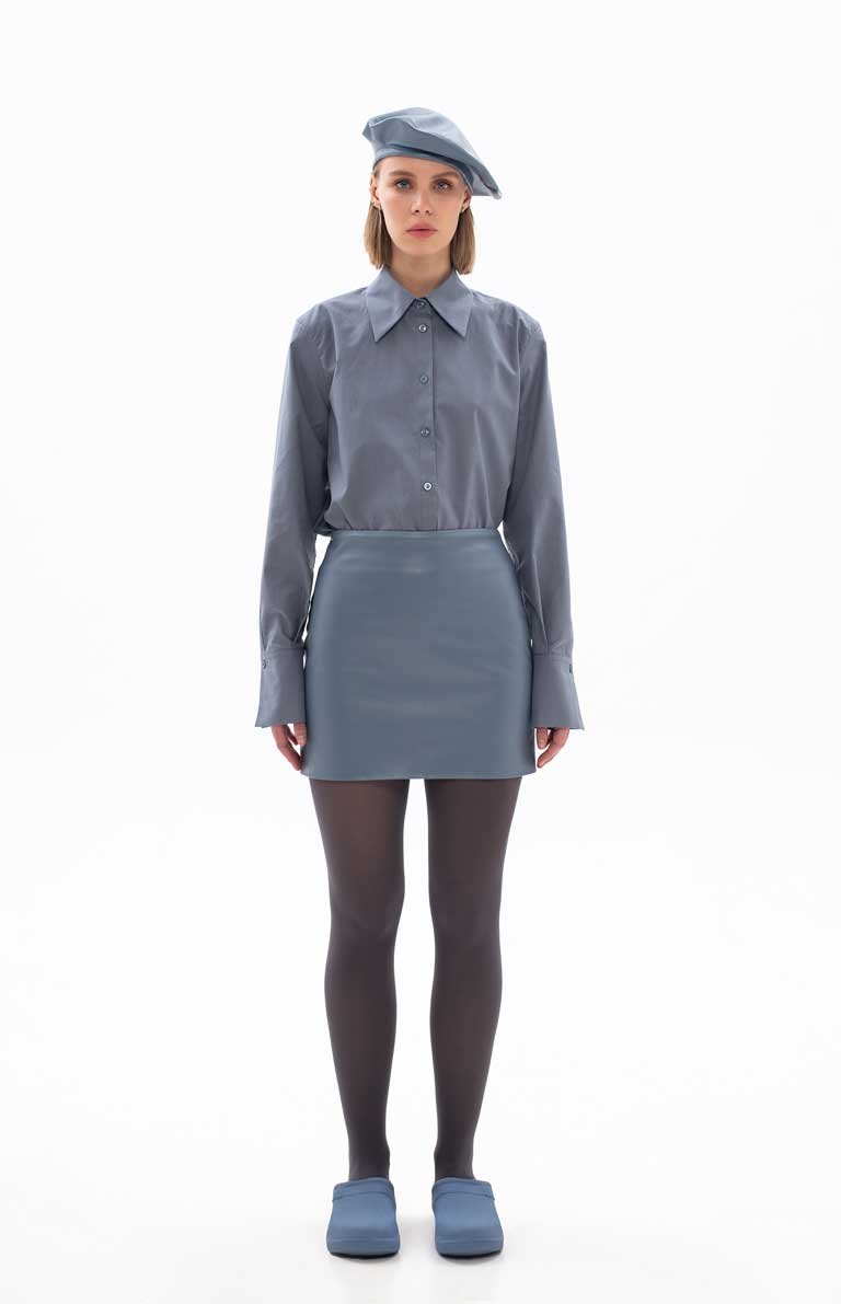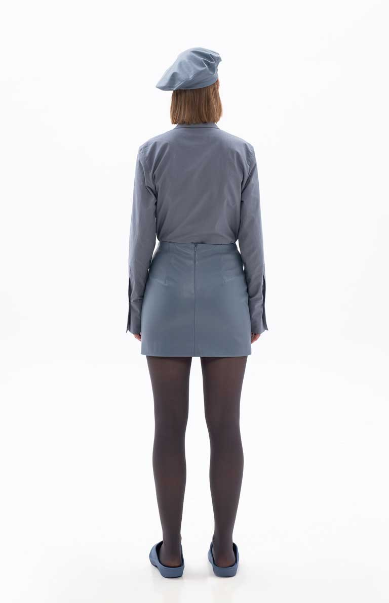 BLUE ECO-LEATHER SKIRT