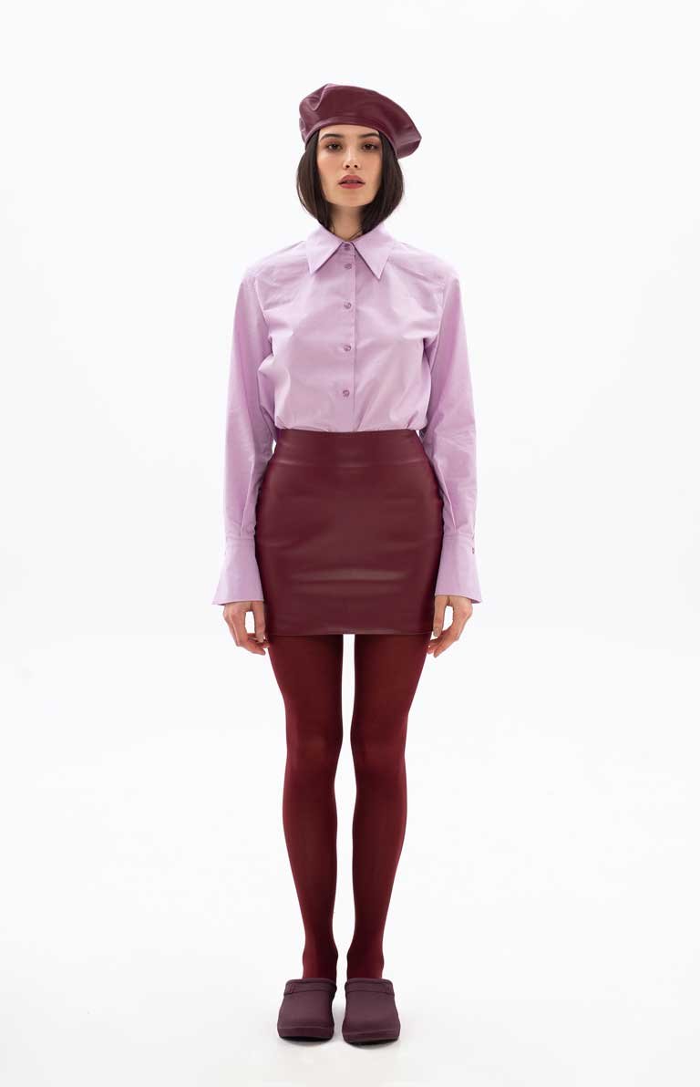 POMEGRANATE ECO-LEATHER SKIRT