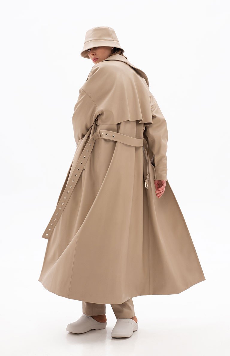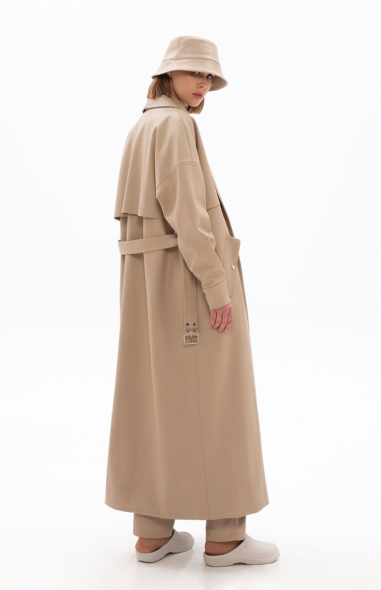 BEIGE ECO-LEATHER TRENCH