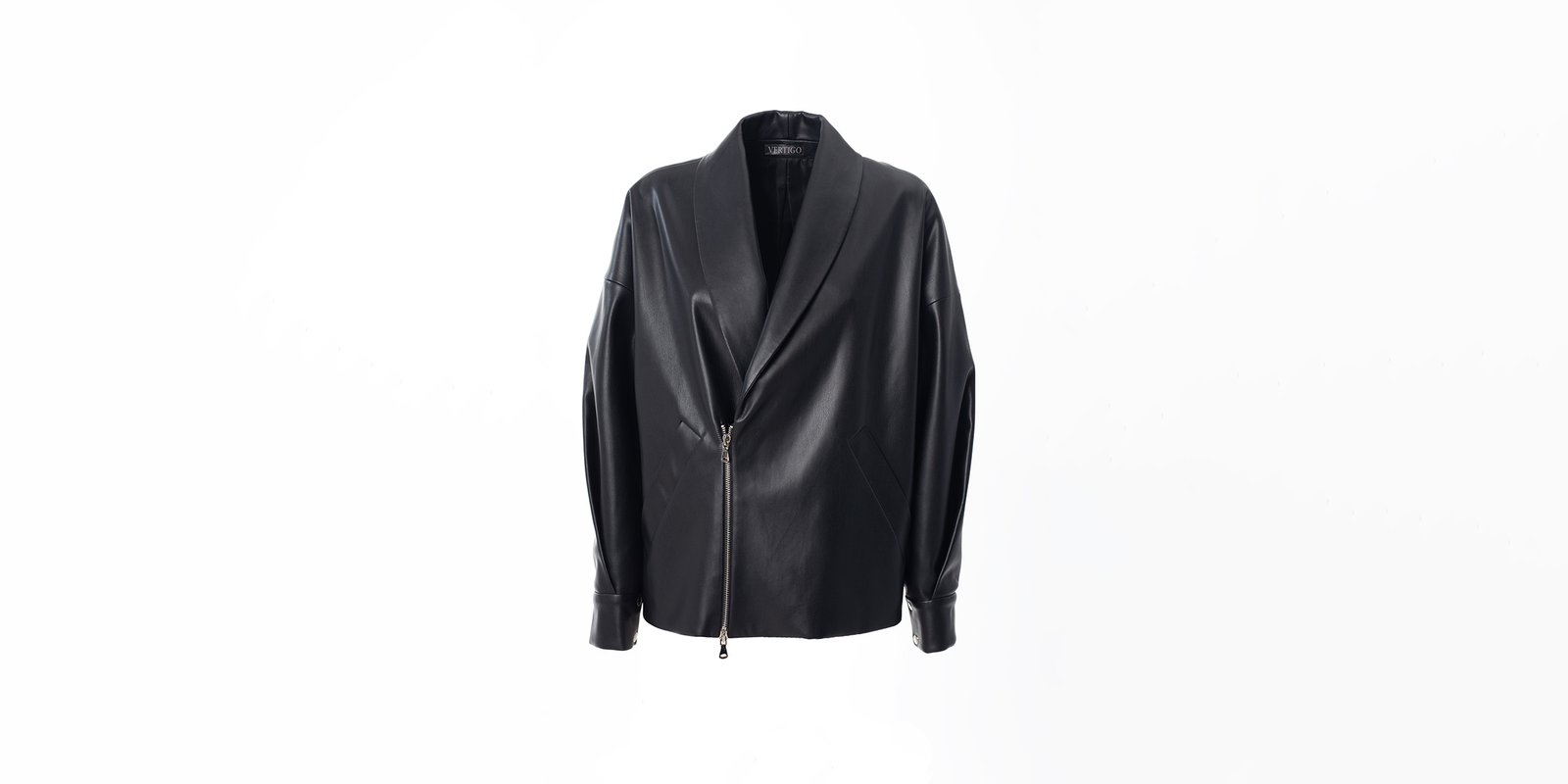 The Black Eco Jacket features a classic silhouette, crafted 100% from eco-leather. The Jacket is designed with a half zip at the front with a branded zipper puller and welt pockets. The shawl-shaped collar gives this jacket a classic yet modern look. The sleeves are designed with a fold sewn at the wrists to add volume and sophisticated draping on the sides.