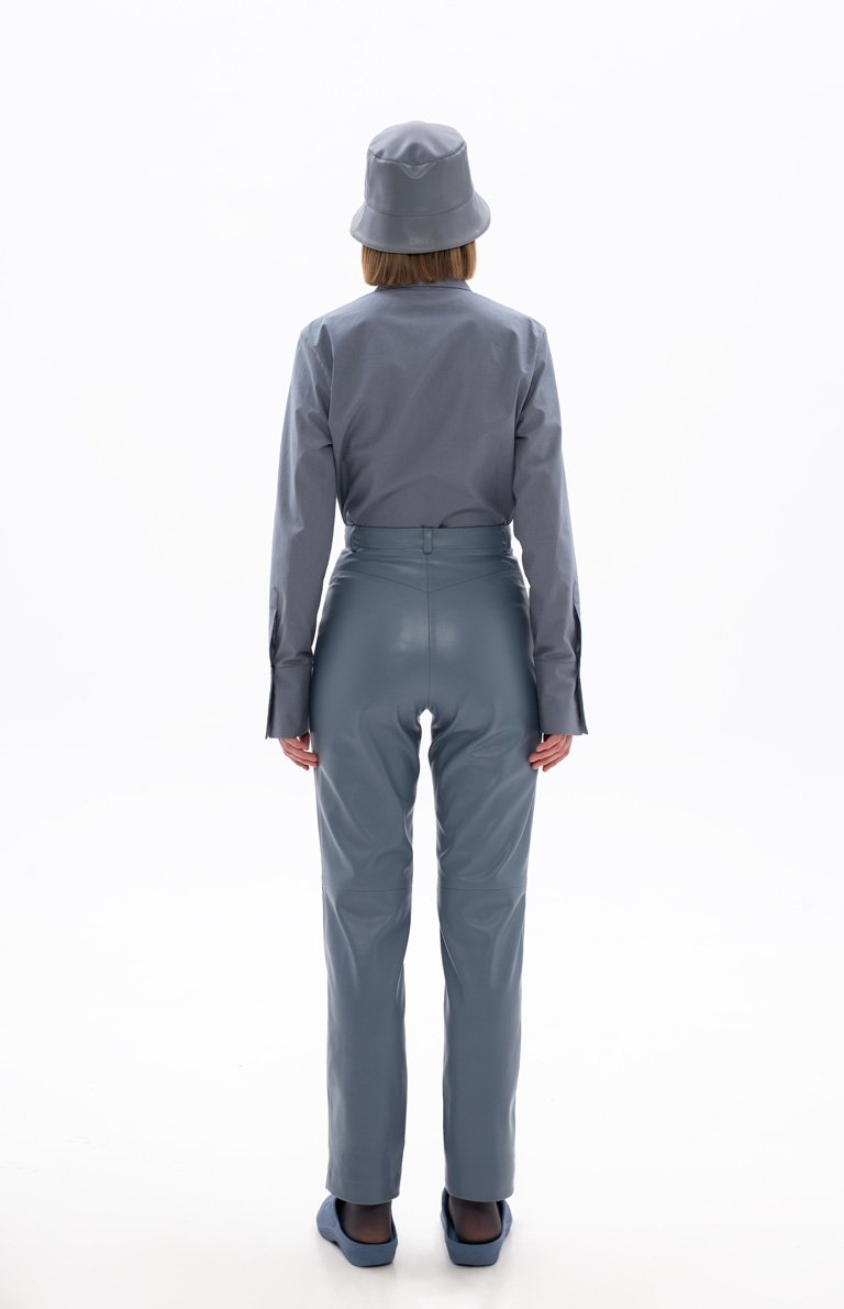 Modern pants crafted from eco-leather with a second-skin effect borrowed from biker culture. Being designed with a slim-leg construction, the draping of the sofly paneled legs makes such a pair a bold alternative to form-fitting denim. This design represents the smooth infusion of the slim-down draping with the rigid effect of premium eco-leather. While the former brings us back to the times when leather seemed futuristic, the latter brings us down to the moment where such a pair of pants becomes the perfect loungewear staple easily intertwining daily life. Coming in 8 bold colorways, style it with a basic VERTIGO shirt for office or with a eco-leather jacket for a more rebellious and statement-making appearance.
