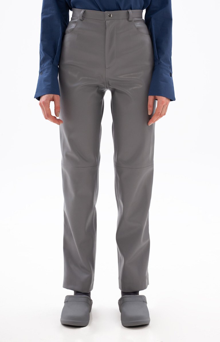 GREY ECO-LEATHER PANTS