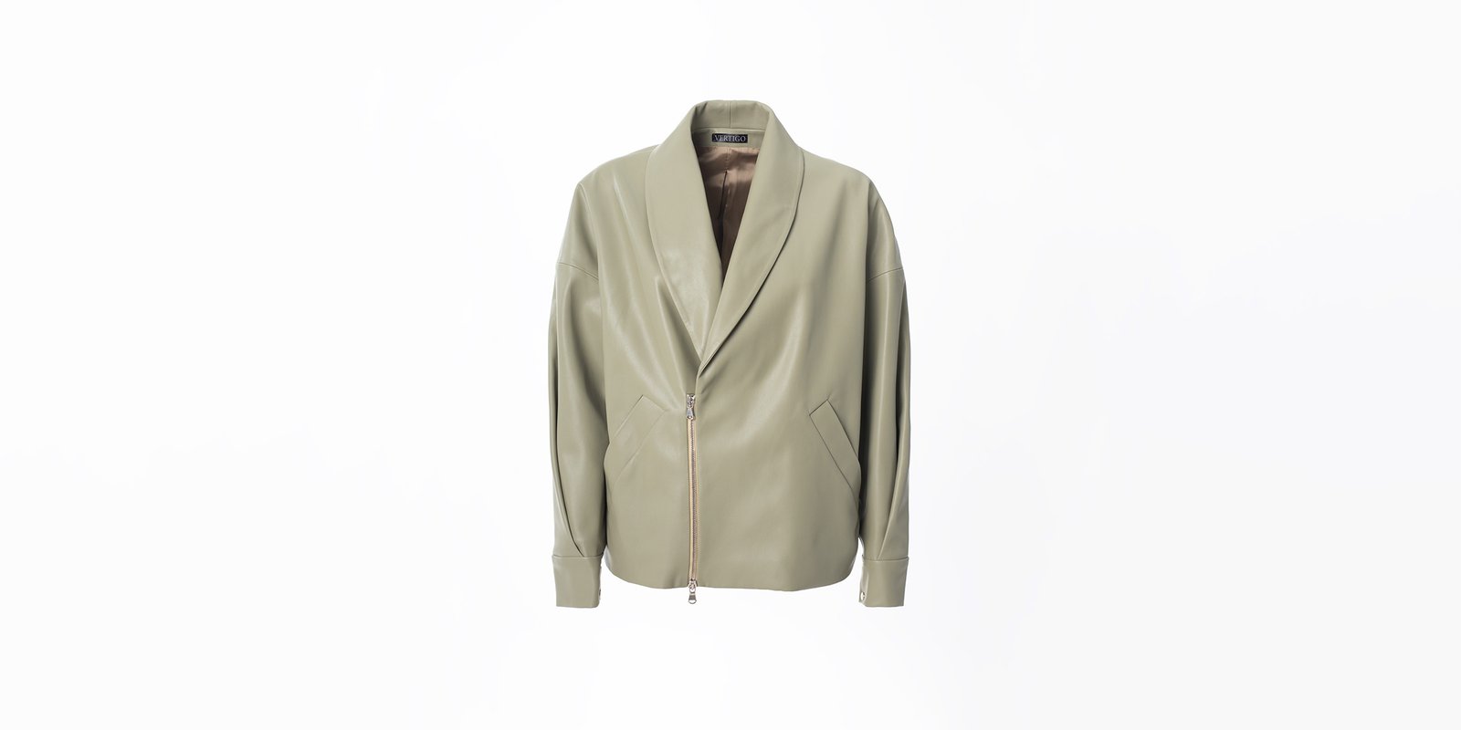 The Pastel Green Eco Jacket features a classic silhouette, crafted 100% from eco-leather. The Jacket is designed with a half zip at the front with a branded zipper puller and welt pockets. The shawl-shaped collar gives this jacket a classic yet modern look. The sleeves are designed with a fold sewn at the wrists to add volume and sophisticated draping on the sides.