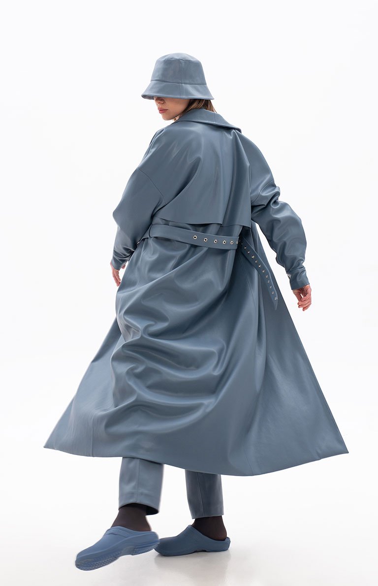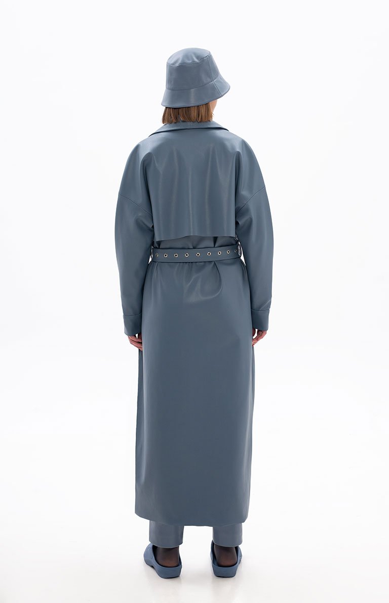 BLUE ECO-LEATHER TRENCH