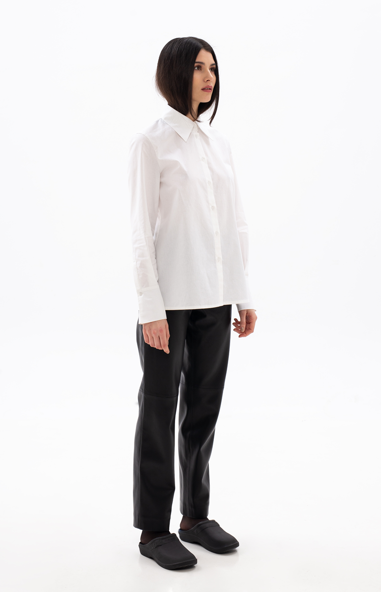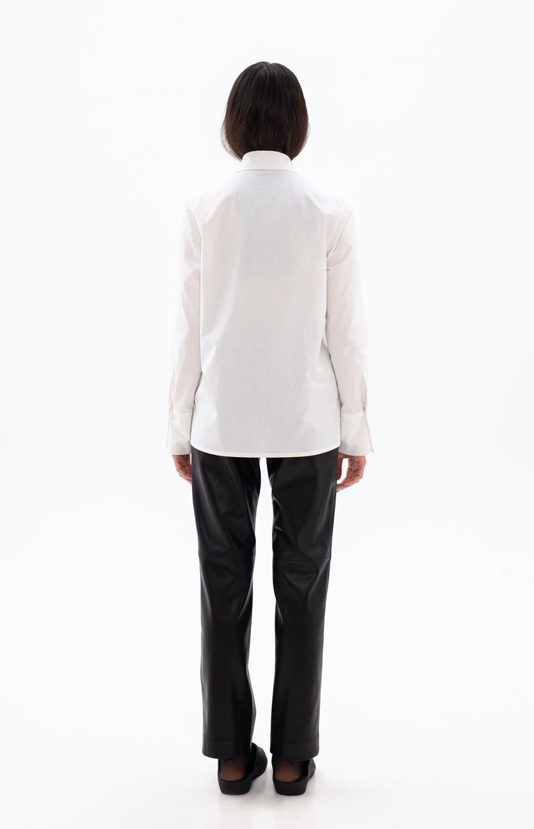 In the attempt to find the recipe for the perfect Women's Shirt, VERTIGO presents to you what it feels like the result of its endeavour. While seaming perfectly neat, or simple, is actually complex in its simplicity. Having an armour-like robust draping, we gave this shirt our signature elements: a spread collar with sharp edges and a elongated cuff with our representative single pleat at the sides. Found in the design of our jackets and trench coats, such a pleat adds volume and allows for a feminine but classy aesthetic. The carefully selected 8 colourways within this collection make each of the shirts timeless essentials that can be easily incorporated in both sophisticated and everyday looks.